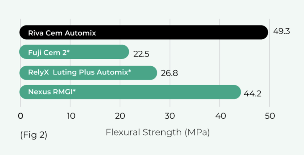 Riva Cem Automix has high flexural strength which increases its durability in the oral environment