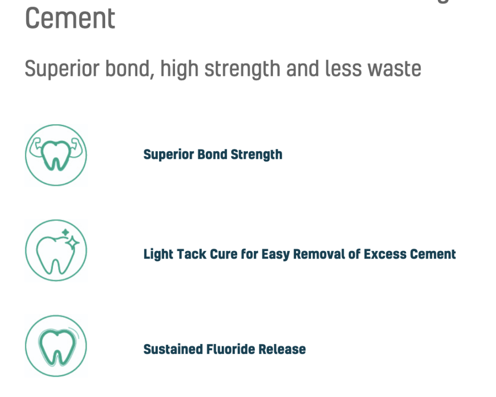 It is indicated for permanent cementation of metal-based and strengthen-core ceramic restorations, and orthodontic appliances.